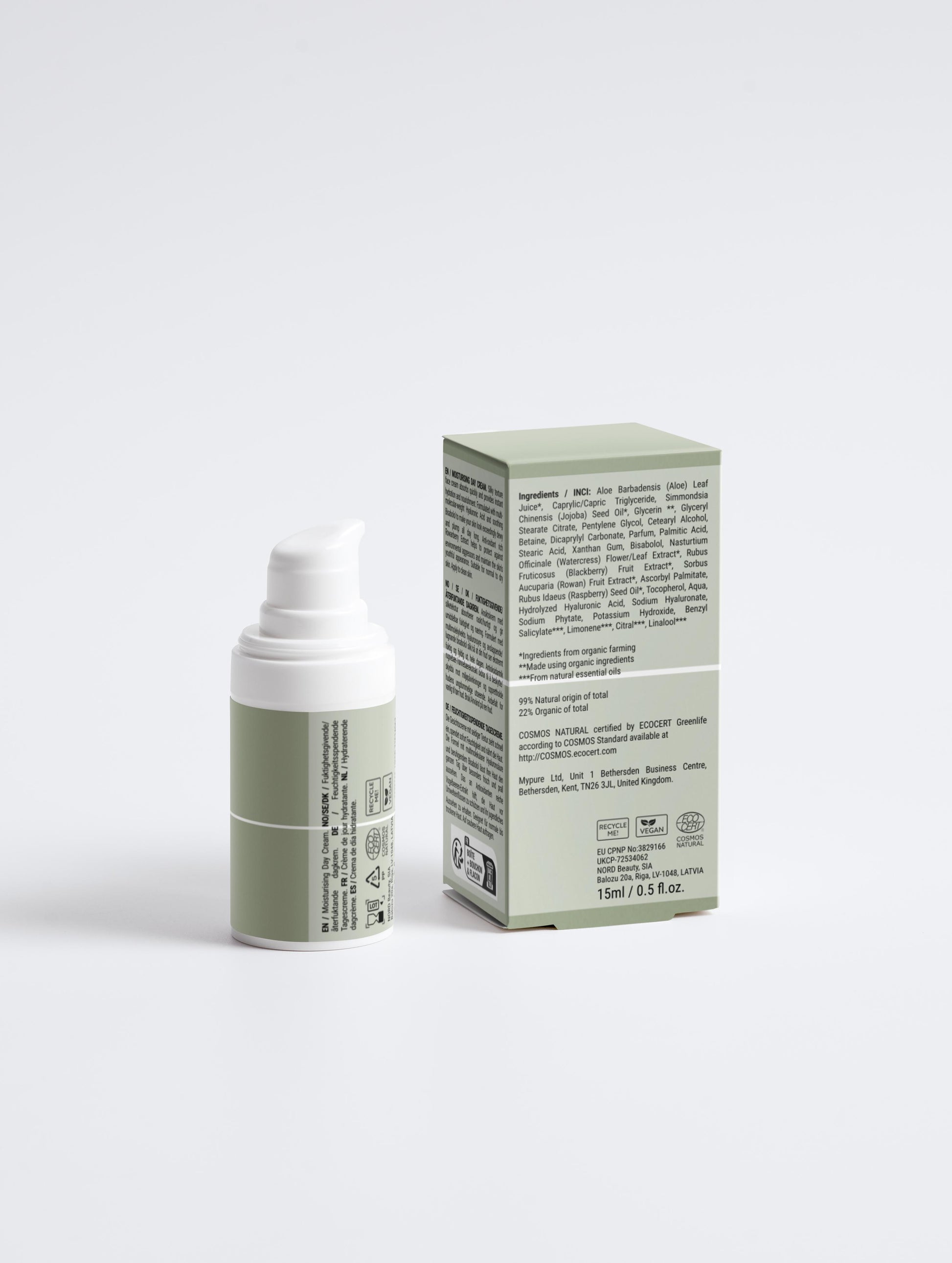 Aloe Barbadensis (Aloe) Leaf Juice, Caprylic/Capric Triglyceride, Simmondsia Chinensis (Jojoba) Seed Oil¹, Glycerin², Glyceryl Stearate Citrate, Pentylene Glycol, Cetearyl Alcohol, Betaine, Dicaprylyl Carbonate, Parfum, Palmitic Acid, Stearic Acid, Xanthan Gum, Bisabolol, Nasturtium Officinale (Watercress) Flower/Leaf Extract¹, Rubus Fruticosus (Blackberry) Fruit Extract¹, Sorbus Aucuparia (Rowan) Fruit Extract¹, Ascorbyl Palmitate, Rubus Idaeus (Raspberry) Seed Oil¹, Tocopherol, Aqua, Hydrolyzed Hyaluronic Acid, Sodium Hyaluronate, Sodium Phytate, Potassium Hydroxide, Benzyl Salicylate³, Limonene³, Citral³, Linalool³